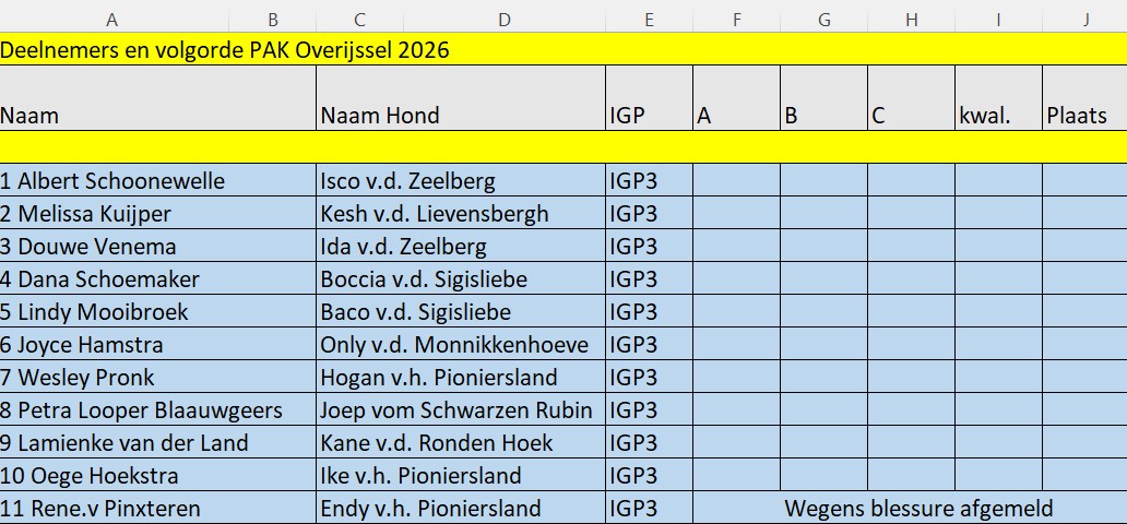 Op zaterdag/zondag 18/19 april 2026 belooft het een zinderende strijd te worden om de titel van Provinciaal Africhtingskampioen Overijssel.