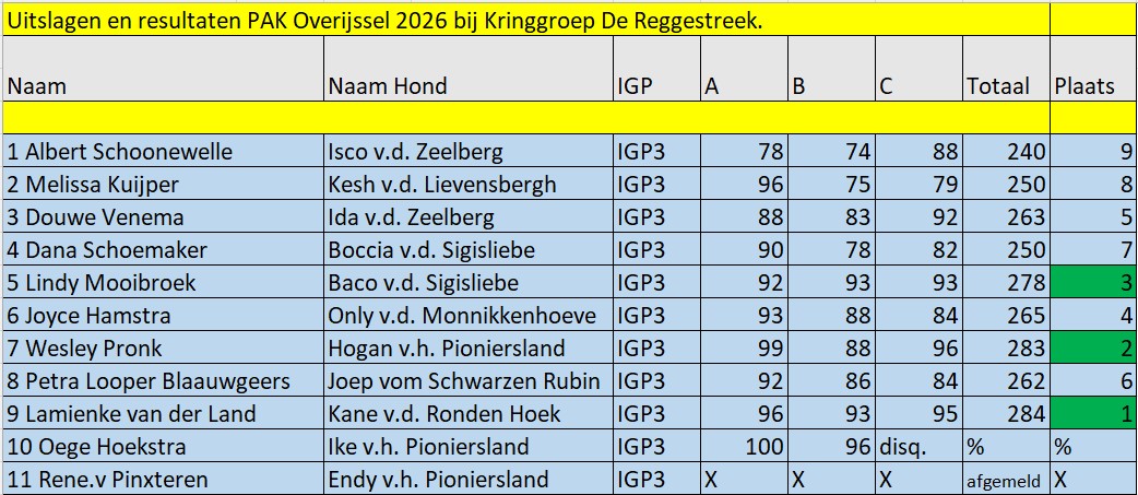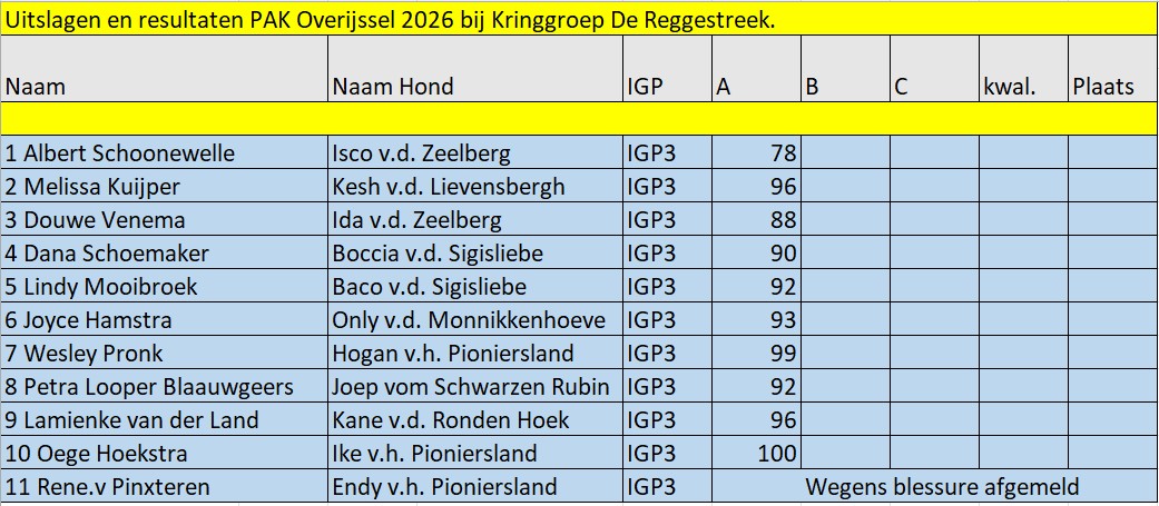 De resultaten na de eerste dag vh PAK Overijssel zijn bekend.